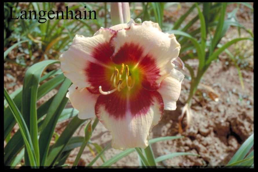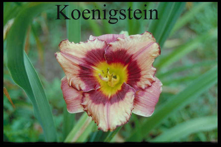 Farbe: creme-gelb mit purpurnem Auge oberhalb grün-gelbem Schlund