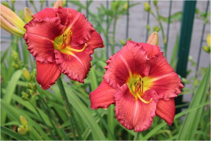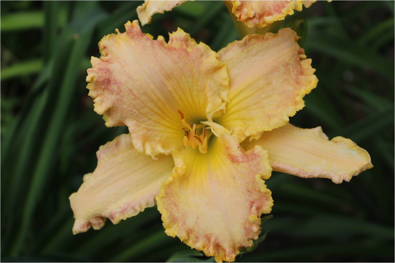 rötlich gelbe Mischung, rötliches Auge und rötlicher gewellter Rand, gelb-grüner Schlund