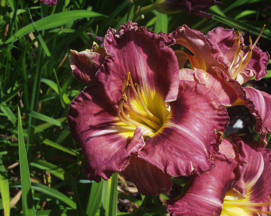 violett-gemischt, dunkleres Auge, goldener Rand, gelb-grüner Schlund