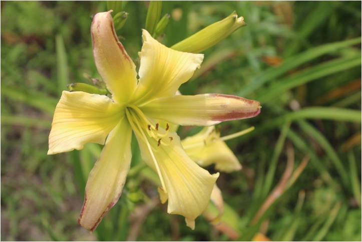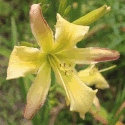 gelb, purpurne Spitzen bei den Sepalen, grüner Schlund