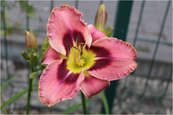 rote Mischung, violettes Auge, gelber Schlund, violett und silbener Rand