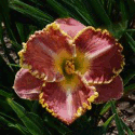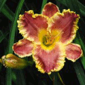 Colour: pink violet with a jagged gold edge and a large yellow throat