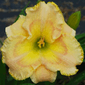 Colour: cream and gold edge above gold purple eyezone and green throat