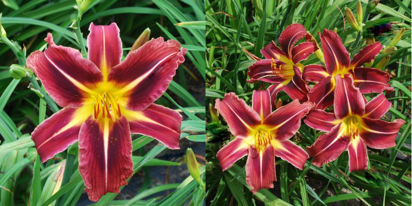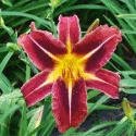 Colour: brilliant red with dark purple eyezone yellow throat and white midribs