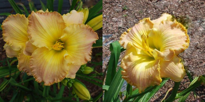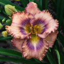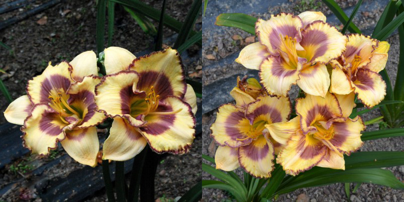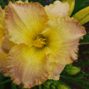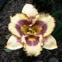 Colour: cream patterned two color yellow violet eye slightly ruffled violet edge above green throat