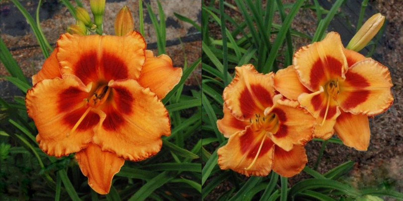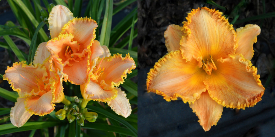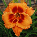 Colour: apricot orange blend with gold edge above green throat