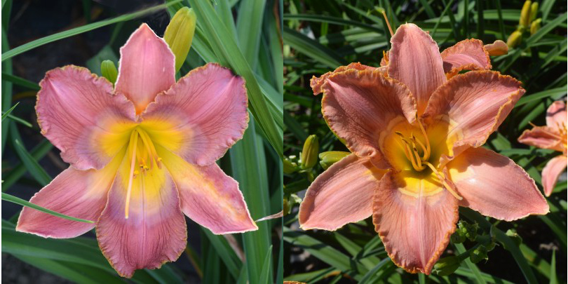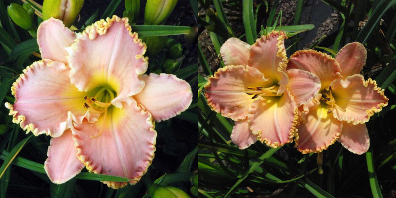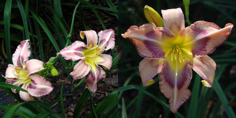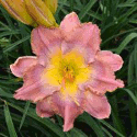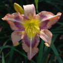 Colour: pink with lilac, violet and cerise patterned eye above a green to yellow throat