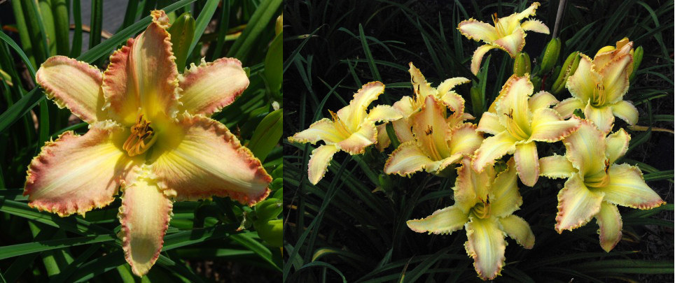 Colour: pale yellow pink with a green to yellow throat, golden jagged on all edges