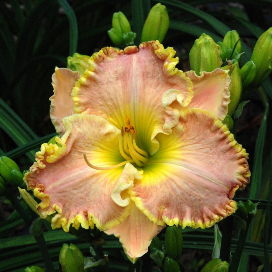 Colour: yellow peach with yellow edge above green throat