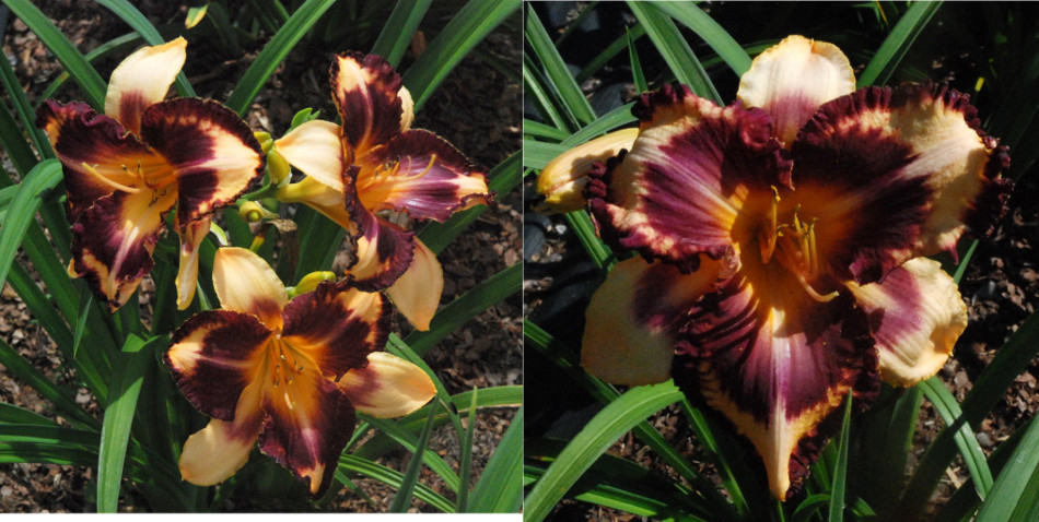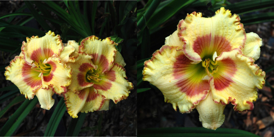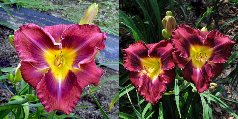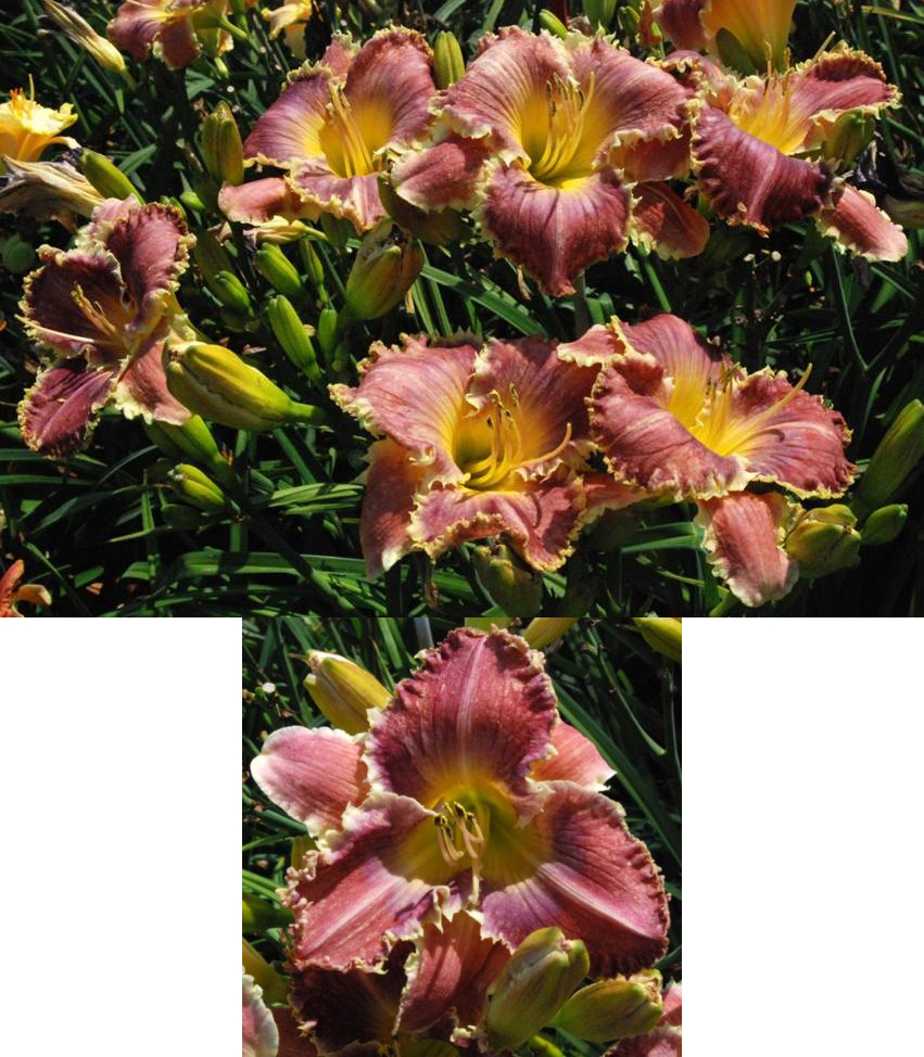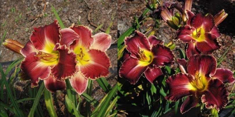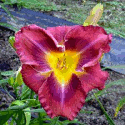 Colour: pastel maroon blend with deep maroon eye and edge above yellow throat