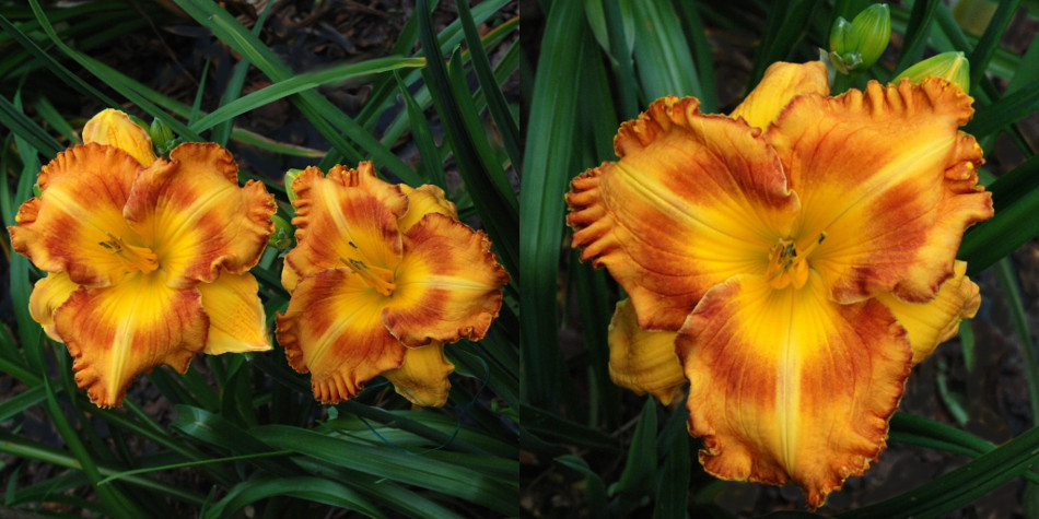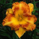Colour: golden sepals and gold mahogany petals with mahogany eye and edge