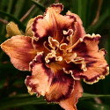 gold orange with plum eye and dark plum to black edge above gold orange throat