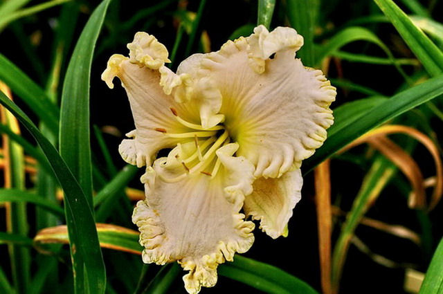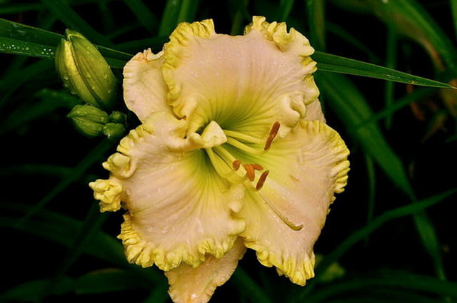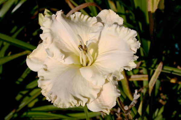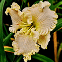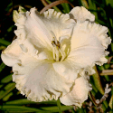bright ivory to white self, gently ruffled and knobby edge, large round petals overlap, no distinct throat