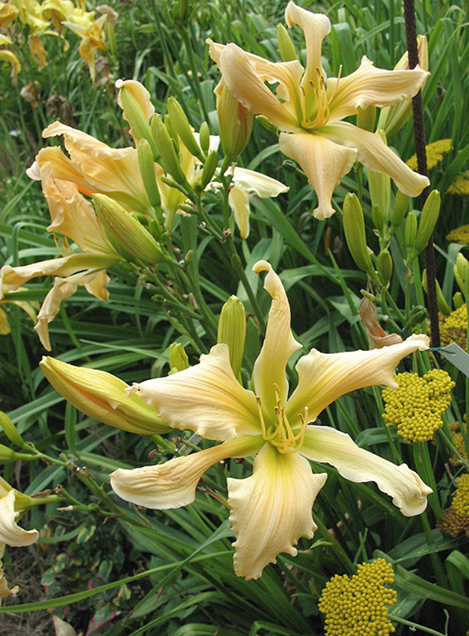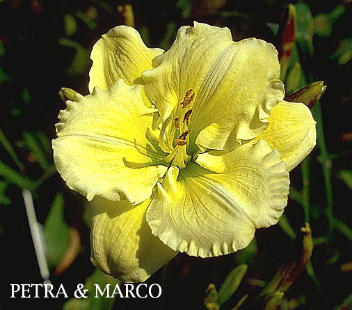 Colour: lemon yellow and tan blend with lemon midrib above deep yellow throat