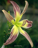Colour: lilac lavender with huge lemon ivory watermark and lemon ivory throat