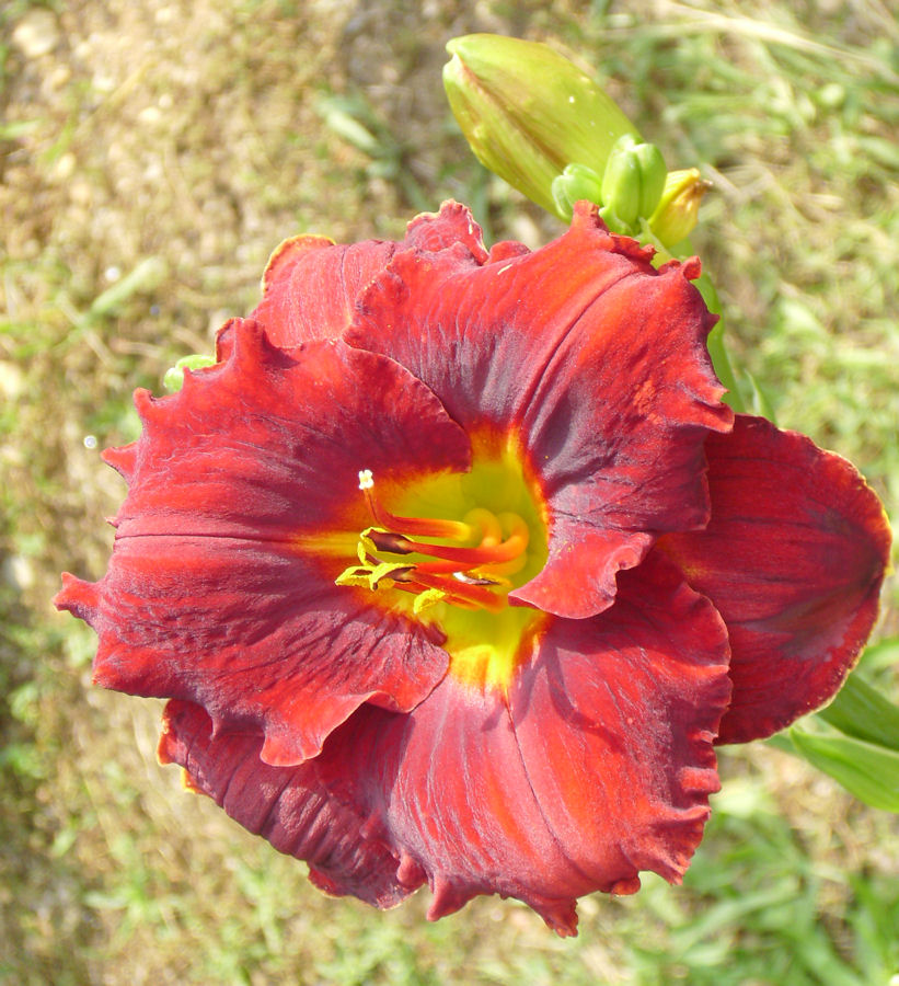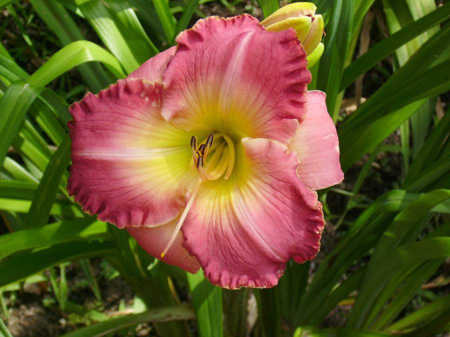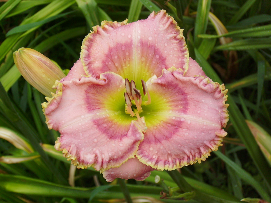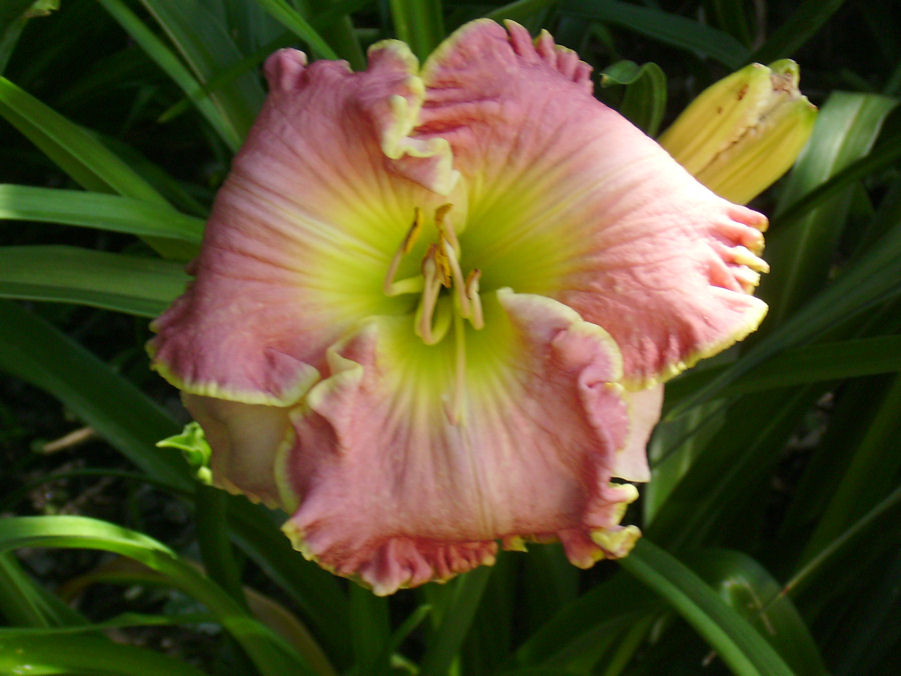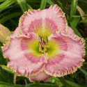 rose pink with pale rose shading to lemon yellow eye above a green throat