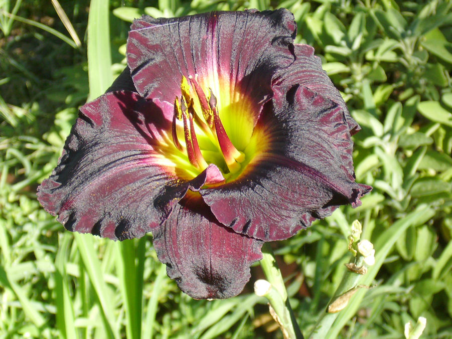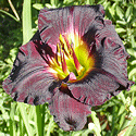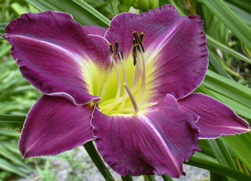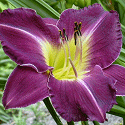 deep grape purple with pale yellow watermark and deep lemon yellow green heart throat