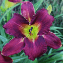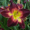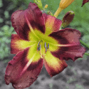 mahogany dark cherry red with watermark and yellow to lime green throat