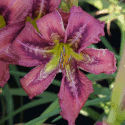 wild rose and violet shades with dark raspberry, broken patterned eyezone above yellow green throat