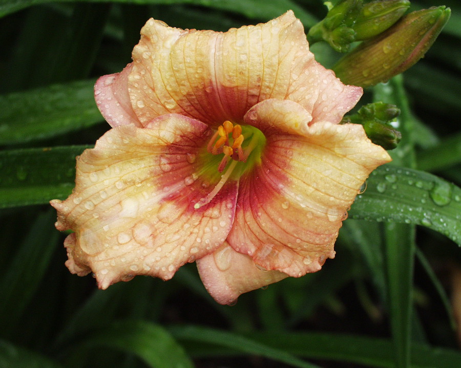 cream violet blend, dark violet eye, and green throat