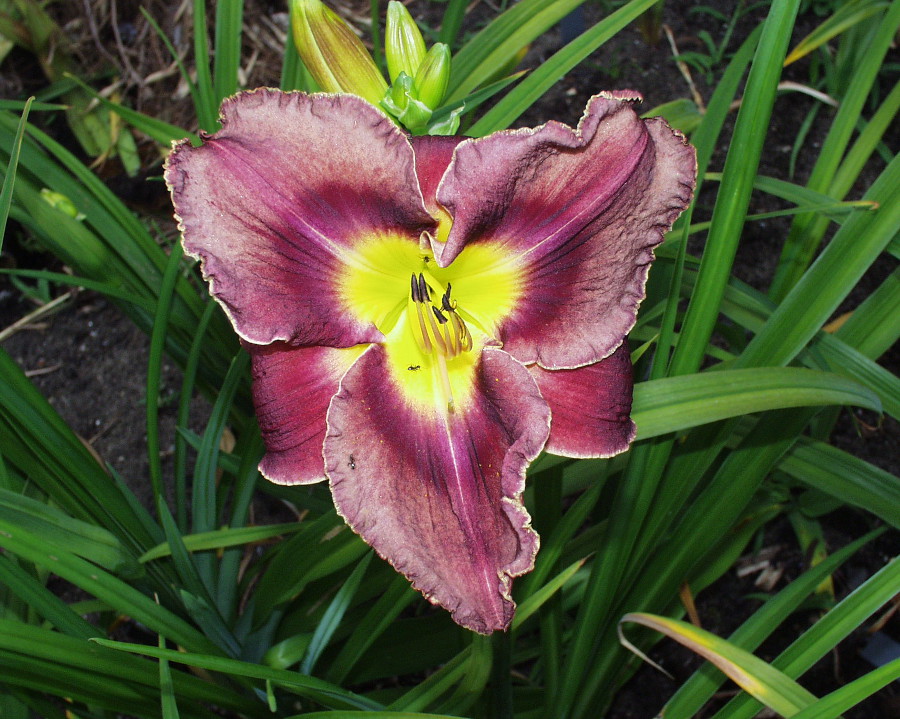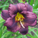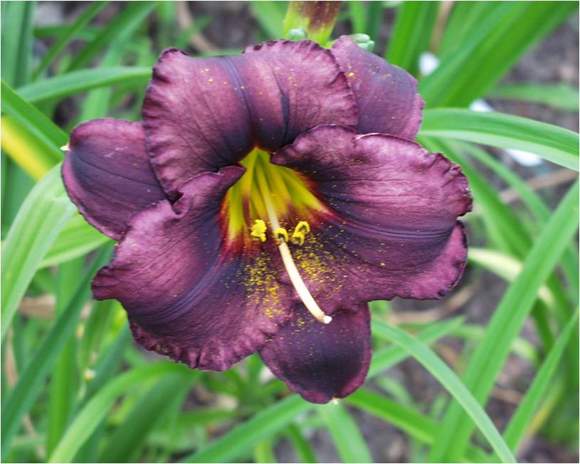 black violet, black eye and edge, yellow green throat