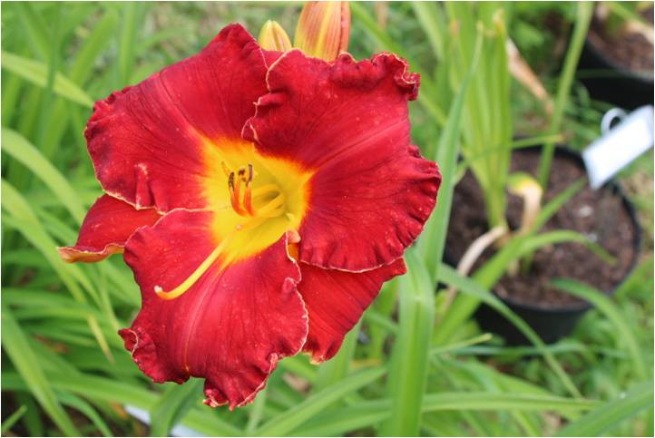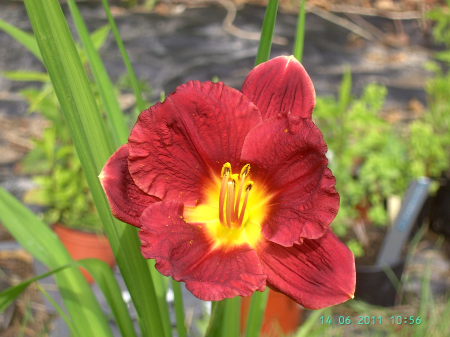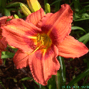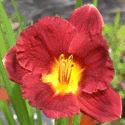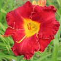 dark wine-red, yellow-green throat, yellow tip of sepal