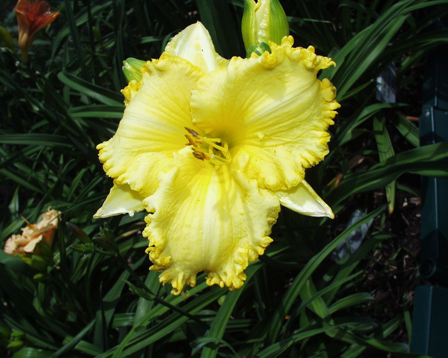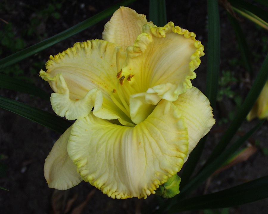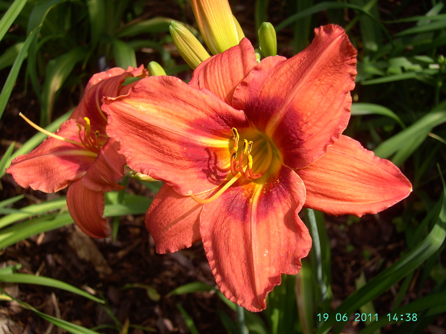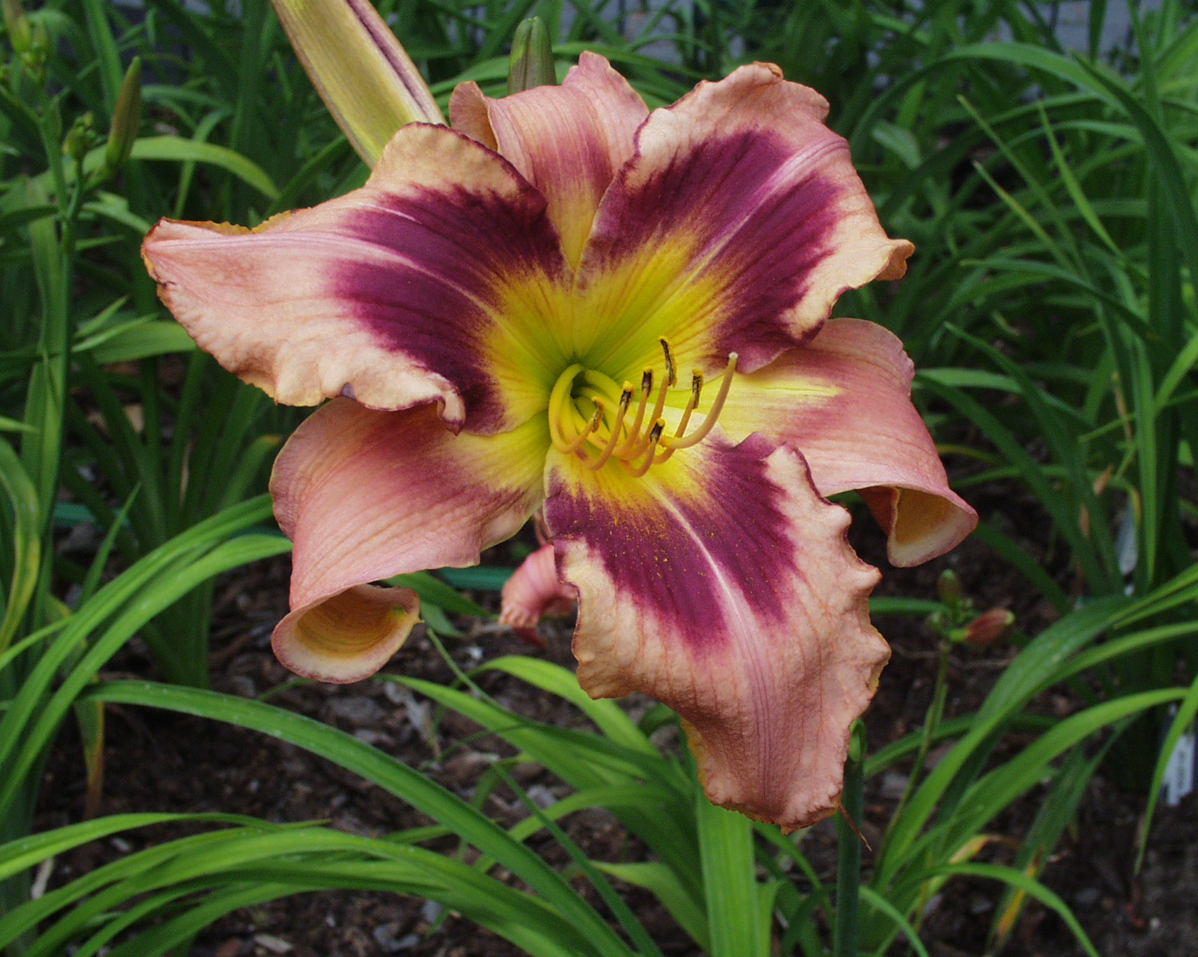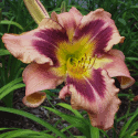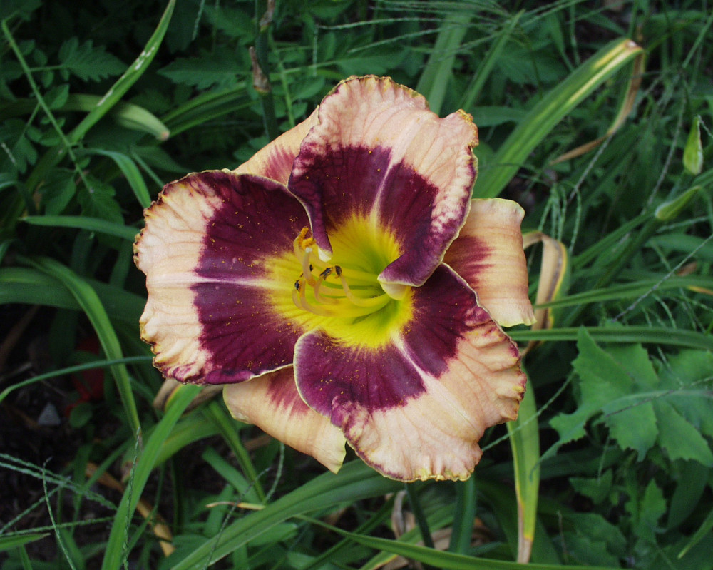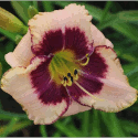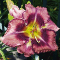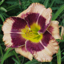 violet, blue violet eye, violet inner edge, golden outer edge, yellow green throat