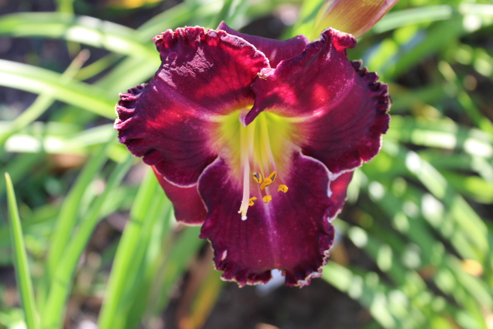 light yellow white blend, large violet eye, broad violet edge, yellow green throat
