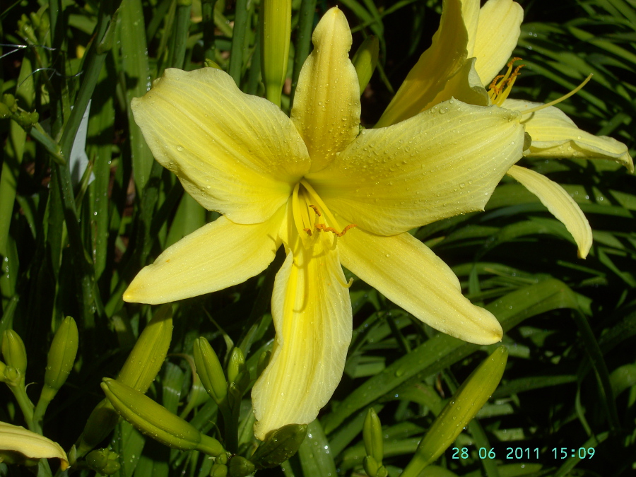 yellow white blend, yellow to green throat, golden strongly serrated edge