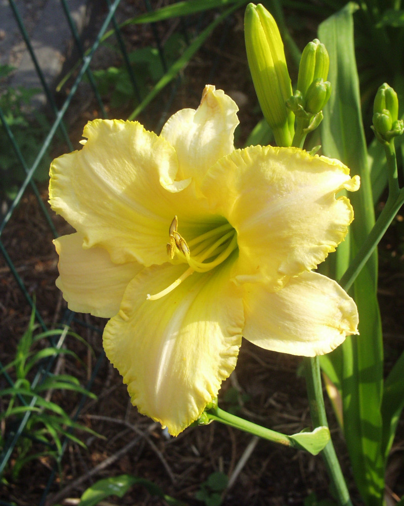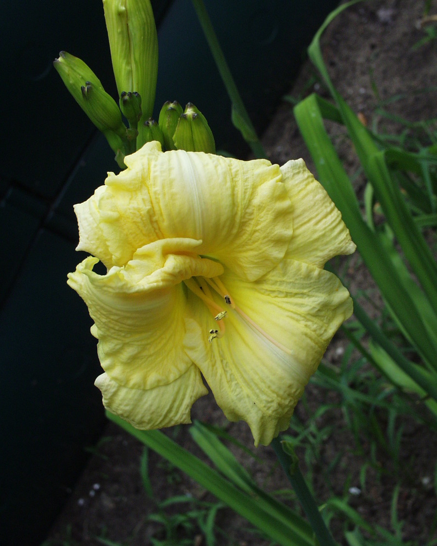 yellow-white blend, corrugated edge, green throat