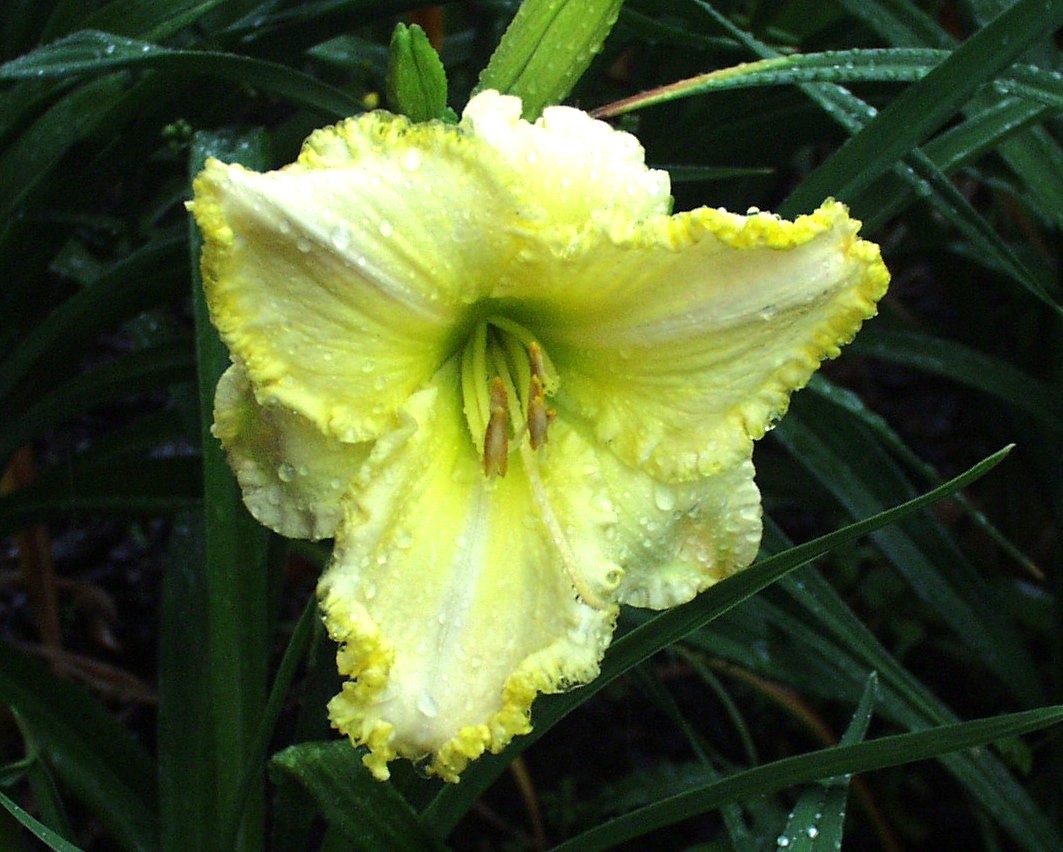 white yellow blend, golden edge, yellow green throat