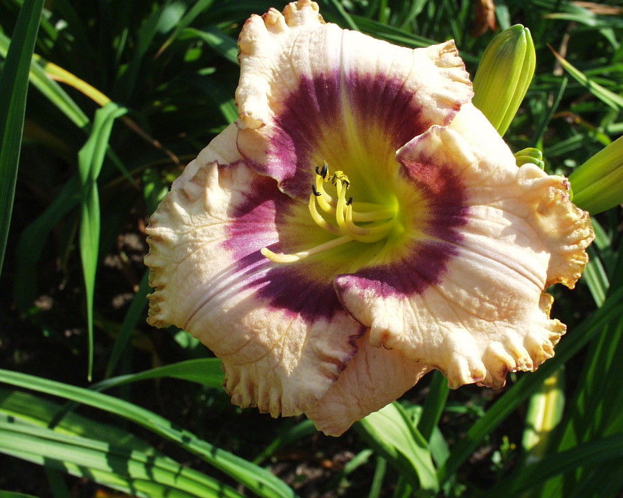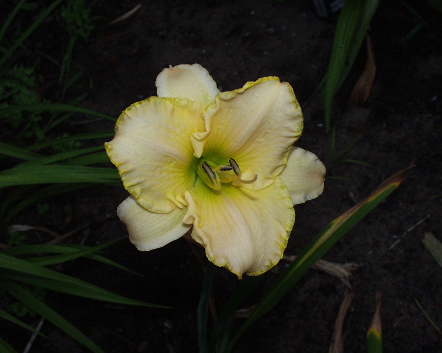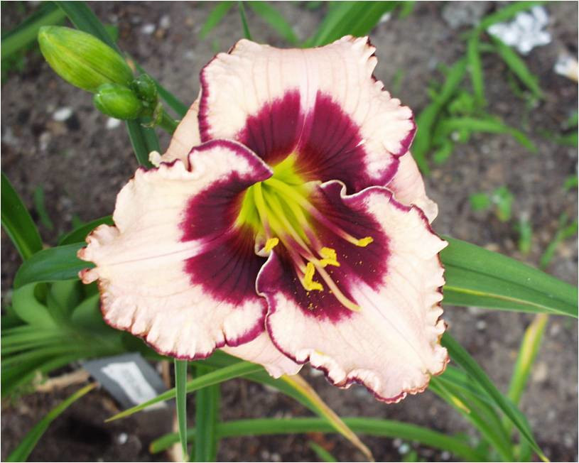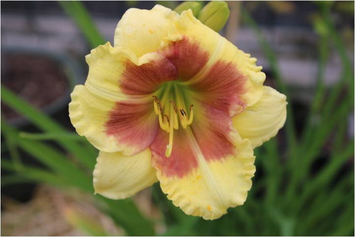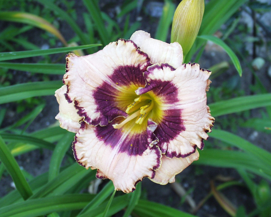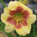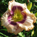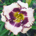 yellow white blend, violet eye, golden and violet edge, yellow green throat