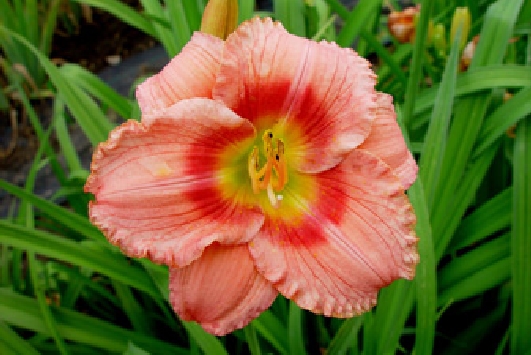 Colour: orange with wine red eye and edge above yellow throat